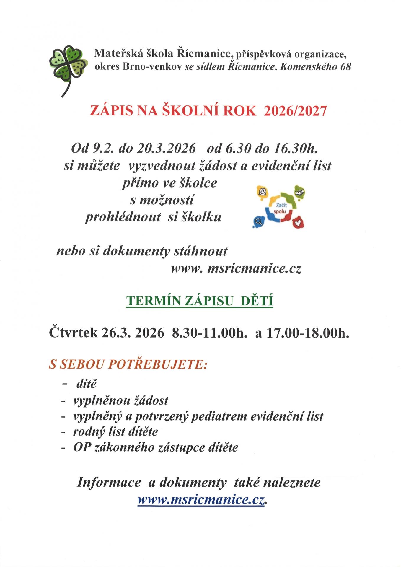 Zápis do MŠ Řícmanice